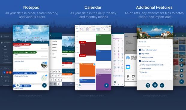 Simplanum là ứng dụng tất cả trong một, nó bao gồm cả ứng dụng lịch và ghi chú.