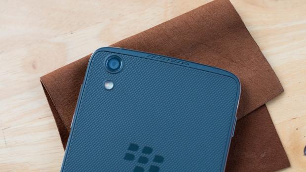 Mặt lưng có các vân sần giúp cho máy bám tay hơn, hạn chế việc trơn trượt khi cầm nắm. Ở mặt sau là logo của BlacBerry, camera chính 13MP cùng với cụm đèn flash LED kép trợ sáng. Ở hai bên khung sườn là viền kim loại với những đường diamond cut sáng bóng, khá đẹp mắt.