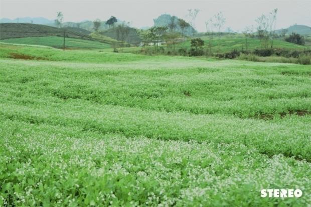 Cánh đồng cải trắng mênh mông trên cao nguyên Mộc Châu vào xuân. Ca khúc Men say của Bức Tường như còn thảng đưa trên từng cánh hoa.