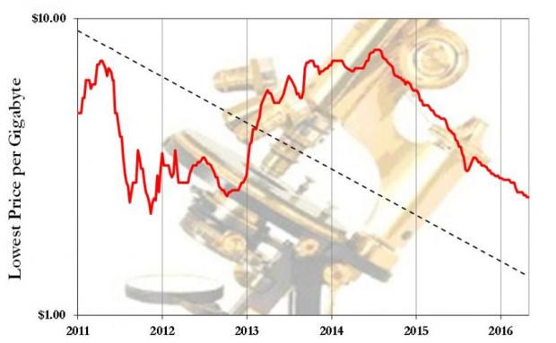 Trong những năm gần đây, các bảng giá hợp đồng về DRAM 'rẻ hóa' đáng kể, và tình hình này cũng đã kéo dài xuyên suốt năm 2016.