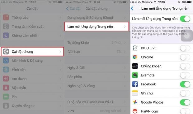 Nếu không cần thiết sử dụng tính năng này, hãy vào Cài đặt > Cài đặt chung > Làm mới ứng dụng trong nền > lựa chọn ứng dụng cần thiết và tắt nó đi.