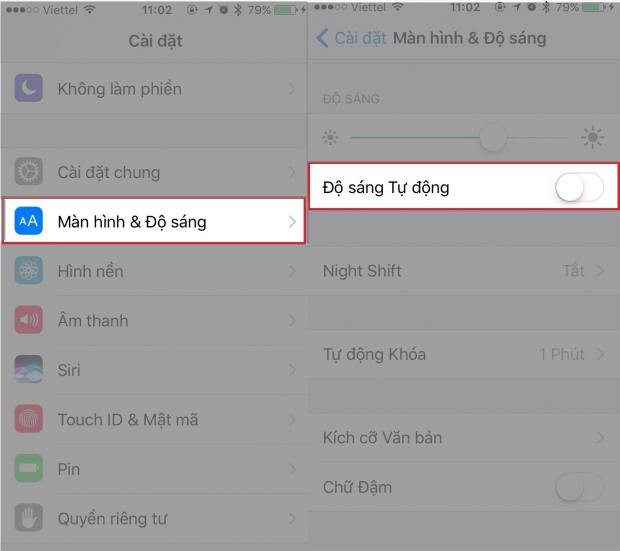 Hãy tắt tính năng Độ sáng tự động. Đến mục Cài đặt > Màn hình & Độ sáng > Độ sáng tự động > Tắt. Khi tắt, bạn sẽ phải điều chỉnh độ sáng màn hình một cách thủ công.