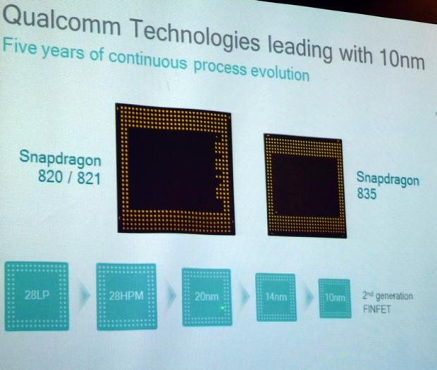 Chipset Snapdragon 835 sử dụng công nghệ 10nm - vi xử lý đầu tiên dùng công nghệ này. Chipset mới của Qualcomm không chỉ dùng cho smartphone mà có thể dùng cho các thiết bị VR, ô tô, máy tính Windows.