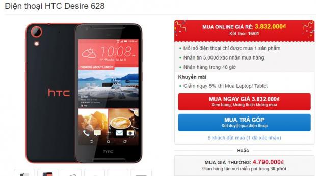 Về cấu hình, HTC Desire 628 sở hữu cấu hình khá tốt gồm màn hình 5 inch độ phân giải HD, chip Mediatek MTK 6753 8 nhân tốc độ 1.3 GHz, RAM 3 GB cùng 32 GB bộ nhớ trong. Đặc biệt máy còn được hỗ trợ 2 SIM và kết nối 4G LTE tốc độ cao.