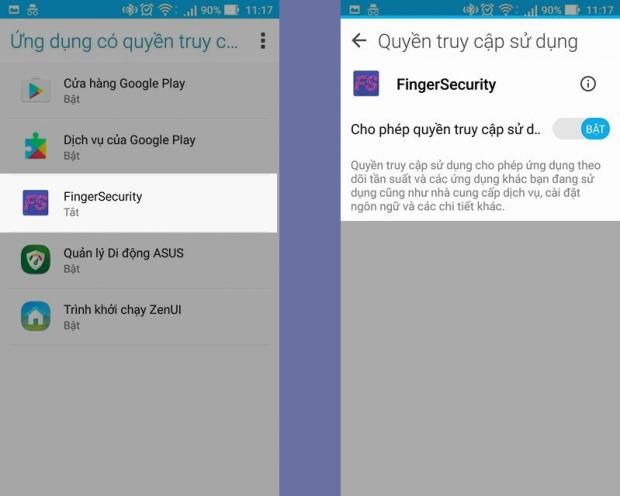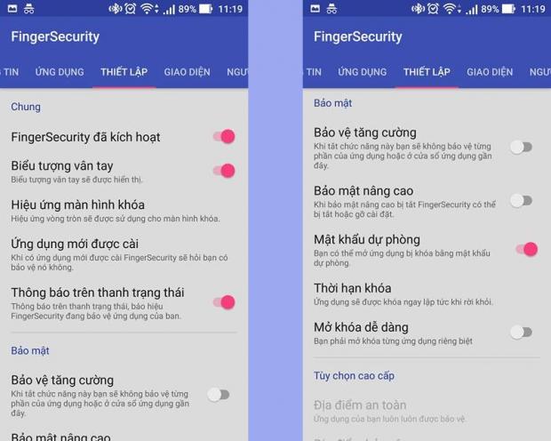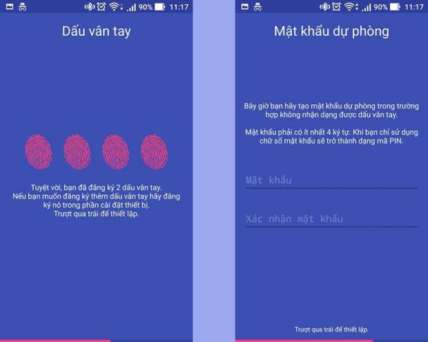 Tiếp theo, người dùng đăng kí dấu vân tay cùng mật khẩu dự phòng cho FingerSecurity.