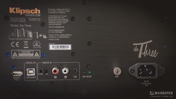 Một điểm khá đáng buồn là Klipsch không trang bị cho The Three dung lượng pin ở trong để bạn có thể nghe nhác di động nhưng việc bạn mang chiếc loa này đi khắp nơi như các loa di động khác cũng không phải là một điều khả thi vì trọng lượng gần 5kg của nó, phần nữa là vì đây là chiếc loa sang trọng, phù hợp với không gian phòng ngủ, phòng khách, phòng làm việc hơn là xách đi ngao du khắp nơi.
