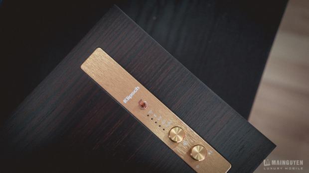 Về mặt thiết kế, 90% The Three sẽ mang những đường nét của The One, chỉ khác là chiếc loa này lớn hơn người anh em của nó một chút. Nhìn vào The Three mình có cảm giác giống như phần loa của Klipschorn cũng thuộc dòng Heritage nhưng ở Three bạn sẽ thấy có chút gì đó tinh tế hơn, gọn gàng hơn chứ không có quá nhiều chi tiết như như Klipschorn. Một phần vì chất liệu gỗ trên bề mặt của The Three được sử dụng vừa phải ở bên trên, Phần gỗ này có màu vàng ươm, óng lên kết hợp với các núm xoay bằng kim loại cũng màu vàng tone xuyệt tone. Phần màng loa màu đen là sự kết hợp giữ vài và polyme giúp chống nước mà lại không kém phần chắc chắn giống như cái cách mà Klipsch đã làm với The One.