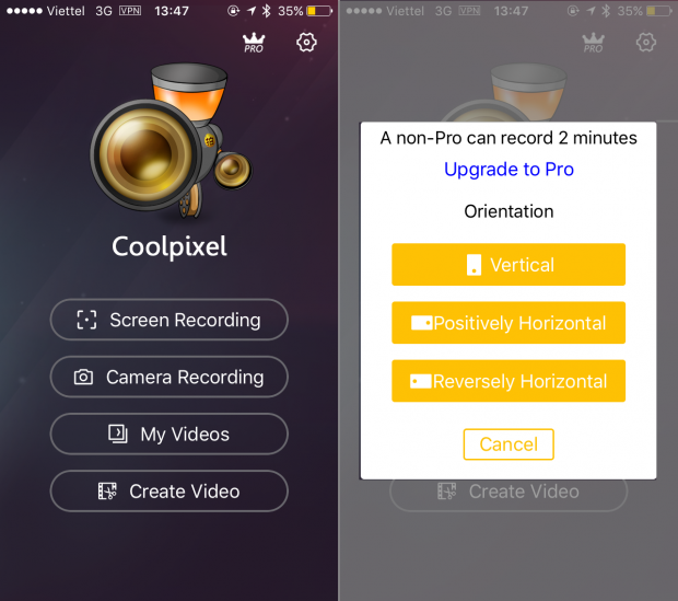 Bạn sẽ chẳng phải mất khá nhiều công sức mà vẫn quay được màn hình nhờ ứng dụng Coolpixel. Ứng dụng này được cài đặt miễn phí tại Appstore, tải về tại đây.