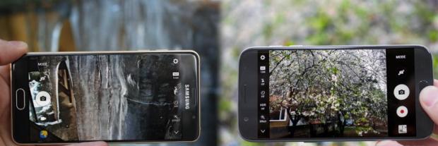 Giao diện camera khá giống nhau, S7 có nhiều chế độ chụp ảnh hơn. A5 cho phép người dùng tuỳ chỉnh các thông số như IOS, bù trừ sáng và cân bằng trắng. Với S7, người dùng có thể can thiệp vào các yếu tố quan trọng hơn như lấy nét tay và tốc độ màn trập.