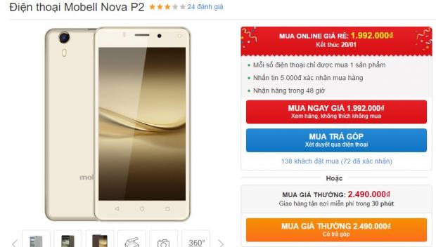 Theo đó, mẫu smartphone đến từ “Quốc đảo sư tử” Singapore - Mobell Nova P2 mới đây đã được điều chỉnh hạ giá mạnh mẽ, từ 2.49 triệu xuống còn 1.99 triệu đồng, giảm 500 ngàn đồng. Lưu ý với các bạn đây là chương trình mua online giá rẻ và có thời hạn đến ngày 20/1 nhé.