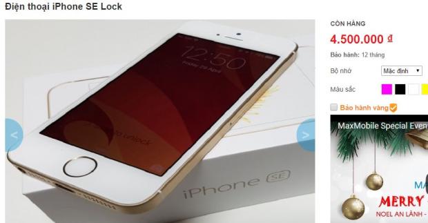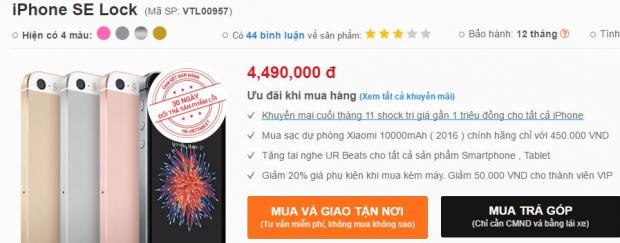 Khảo sát qua một số trang bán lẻ iPhone khóa mạng tại Việt Nam, bạn có thể thấy có rất nhiều trang đang rao bán iPhone SE lock với giá rất rẻ, chỉ khoảng 4.5 triệu đồng. Các trang này cũng đưa ra cả các khuyến mãi đi kèm hấp dẫn như dán màn hình, bảo hành 12 tháng...