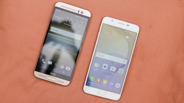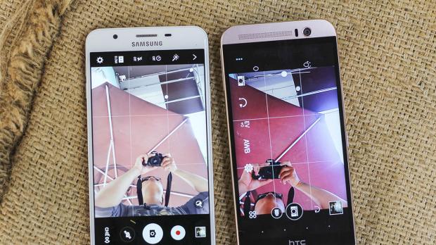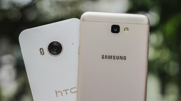 Cho tiện theo dõi, ảnh bên trái là của HTC One ME, bên phải là Galaxy J7 Prime.
