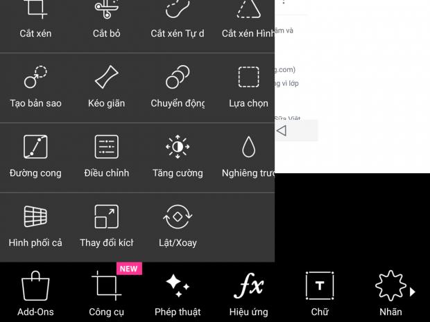 Bạn sẽ được chuyển đến giao diện chỉnh sửa hình như sau. Kéo thanh công cụ sang trái, chọn mục Thêm ảnh.