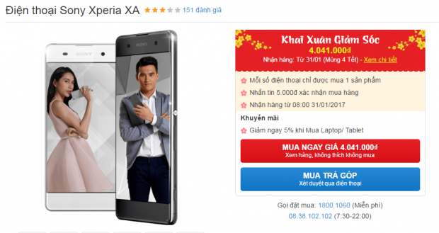 Vừa được giảm giá chỉ còn khoảng 4 triệu đồng dịp Tết này, XA sẽ là một sản phẩm rất đáng để quan tâm. Ưu điểm của thiết bị này còn đến từ camera với cảm biến Exmor RS 13MP phía sau, camera trước 8 MP được tích hợp sẵn nhiều tính năng độc quyền của Sony.