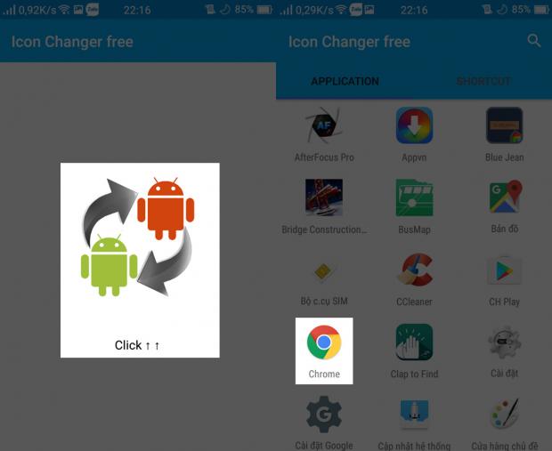 Cách sử dụng rất đơn giản, mọi người chỉ cần mở ứng dụng lên, chọn ứng dụng mình muốn đổi icon.