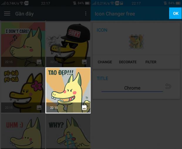*Lưu ý: icon Changer Free chỉ tạo thêm một lối tắt mang icon bạn muốn chứ không ghi đè lên biểu tượng mặc định của ứng dụng.