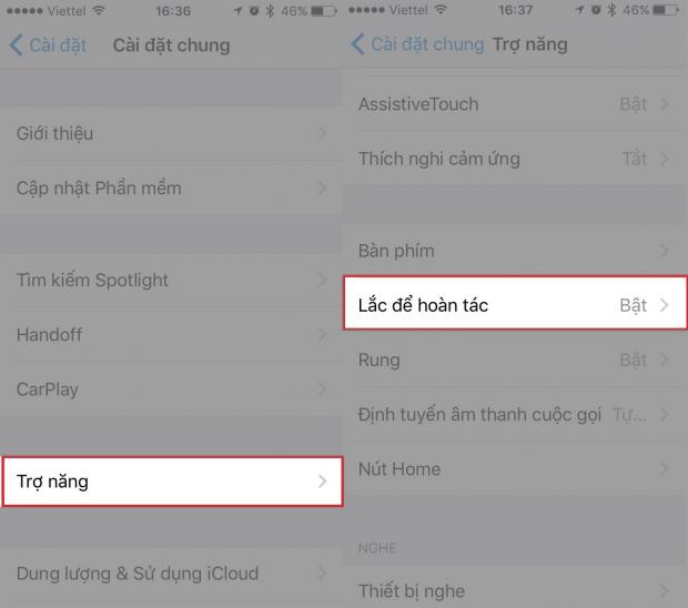 Để thực hiện được điều này, vào Cài đặt chung > Trợ năng > Lắc để hoàn tác và bật tính năng này lên.