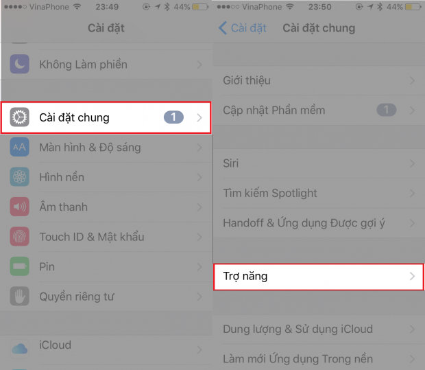 Trước tiên, bạn cần bật công cụ Assistive Touch lên bằng cách vào Cài đặt > Cài đặt chung > Trợ năng.