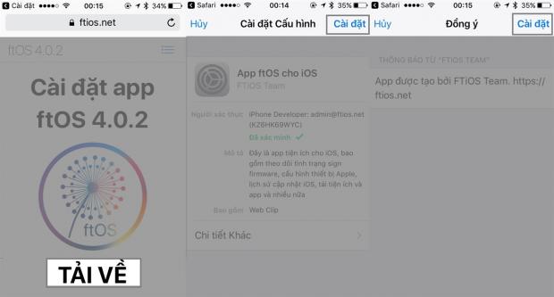 Để tải FTiOS về thiết bị, từ trình duyệt Safari, bạn truy cập vào địa chỉ https://ftios.net/install. Sau đó nhấp vào Tải về.