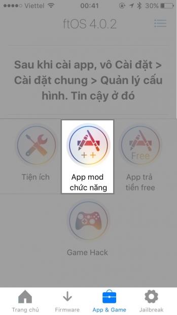 Tại đây hãy chọn tùy chọn App mod chức năng.