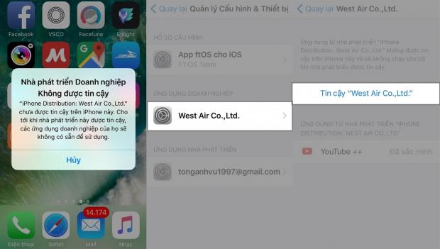 Để khởi động được ứng dụng đã cài đặt (ở đây mình chọn Youtube++), người dùng cần cấp quyền cho ứng dụng bằng cách truy cập vào Cài đặt > Cài đặt chung > Quản lý Cấu hình & Thiết bị.