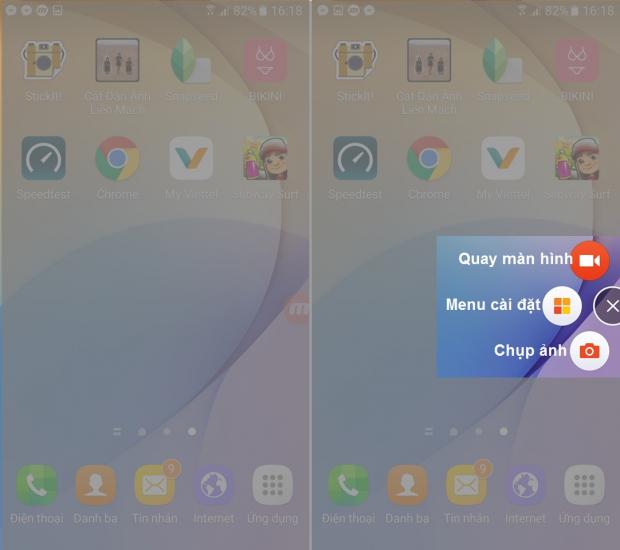 Khi bấm vào đó bạn sẽ có 3 tuỳ chọn là: Quay, Menu và Chụp.