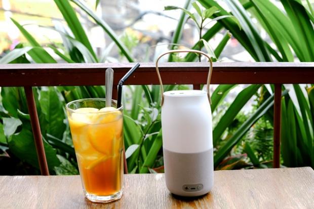 Lớp áo màu trắng sữa mang lại sự thích mắt khi nhìn, loại bỏ đi vẻ thô kệch, nặng nề trên những chiếc loa không dây truyền thống.