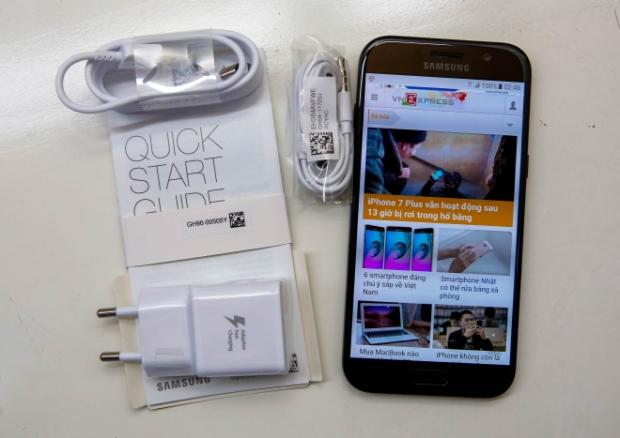 Galaxy A 2017 sẽ được bán cùng với sách hướng dẫn, sạc, cáp kết nối và tai nghe. Trong đó, Galaxy A7 có giá 10,99 triệu đồng còn Galaxy A5 là 8,99 triệu đồng.