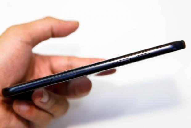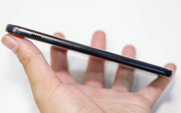 Phần khung sườn được làm bo tròn và gắn kết chặt chẽ với hai mặt kính, Samsung không còn sử dụng các đường cắt kim cương gây cấn tay trên smartphone mới của mình. Loa ngoài được đưa qua phải và nằm phía trên nút nguồn.