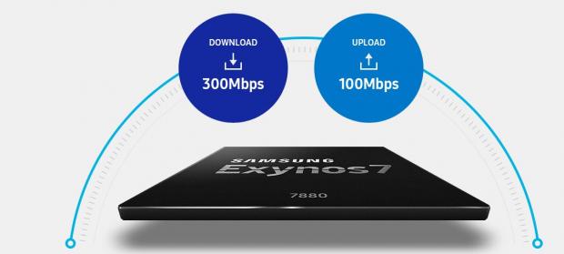 Exynos 7880 cũng hỗ trợ modem LTE Cat 7 cho tốc độ download lên đến 300 Mbps và upload 100 Mbps.