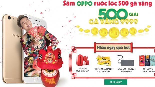 Chương trình kéo dài từ ngày 1/2/2017 (tức ngày mùng 5 Tết) cho tới hết ngày 28/2/2017. Bất kỳ khách hàng nào mua sản phẩm của OPPO như “chuyên gia selfie' F1s, F1 Plus, A39, A37 và Neo 7s tại Thế Giới Di Động đều có cơ hội nhận thưởng 500 gà vàng 9999 Tài Lộc may mắn.