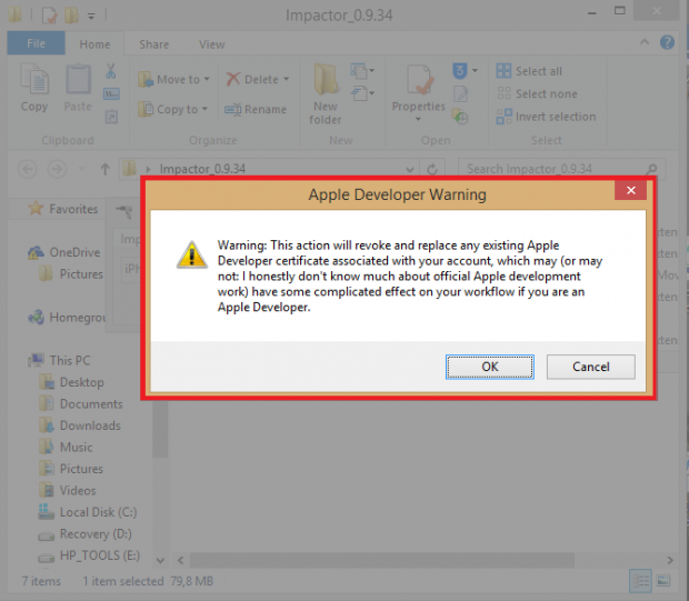 Sau khi nhập Apple ID vào, một bảng cảnh báo nhà phát triển của Apple sẽ hiển thị. Bước này bạn tiếp tục chọn OK.