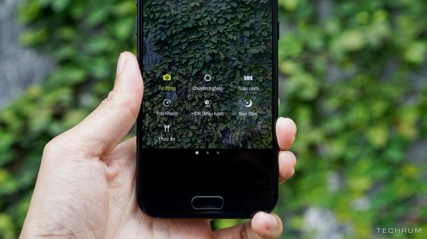 Khi vuốt từ cạnh phải sẽ xuất hiện các bộ lọc màu và hiệu ứng làm đẹp, còn từ trái qua sẽ là các chế độ chụp bao gồm Auto, Panorama, trôi nhanh (Hyperlapse), chụp đêm (Night), HDR, thức ăn (Food) và chế độ Pro cho phép tuỳ chỉnh thông số ISO, EV và cân bằng trắng. Ngoài ra, người dùng có thể tải thêm những tính năng chụp ảnh khác nếu muốn trong ứng dụng Galaxy Apps.