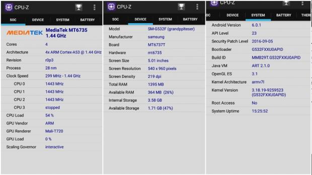Chiếc Galaxy J2 Prime Techsign.in có dịp cầm qua (mã hiệu SM-G532F) dùng vi xử lý MediaTek 6737T, đây là một con chip lõi tứ có tốc độ xung nhịp 1,4GHz, bộ nhớ RAM 1,5GB, bộ nhớ trong 8GB. Cấu hình này là không quá mạnh khi so sánh với các smartphone khác trong tầm giá 3 triệu đang có mặt trên thị trường, song Samsung Galaxy J2 Prime vẫn cho tốc độ xử lý vào tầm khá.