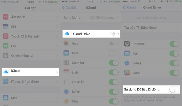 1. Tắt tính năng lưu dữ liệu trên iCloud bằng Dữ liệu di động