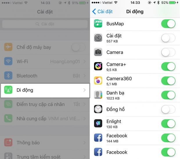 Mặc định sau khi cài đặt, các ứng dụng sẽ tự động được cho phép sử dụng dữ liệu mạng. Chính điều này kết hợp việc ứng dụng được làm mới trong nền đã nuốt khá nhiều dung lượng truy cập dữ liệu trên iPhone.