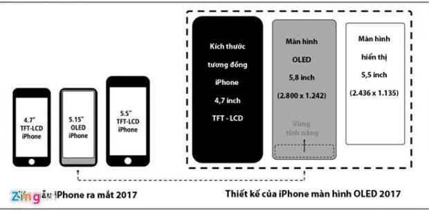 Theo đó, mẫu iPhone thế hệ thứ 10 sẽ sử dụng màn hình OLED 5,8 inch (2.800 x 1.242 pixel) với diện tích hiển thị là 5,15 inch. Phần còn lại của màn hình sẽ dành cho vùng điều khiển cảm ứng mà Kuo gọi là “vùng tính năng” (function area).