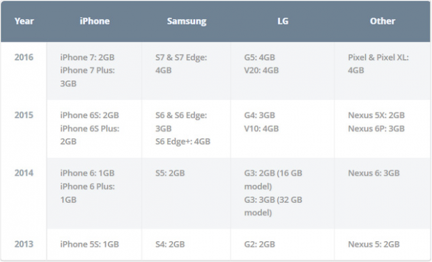 Trong khi Google Pixel, Samsung Galaxy S7 hay Asus ZenFone 3 đều có phiên bản với bộ nhớ RAM 4 GB, iPhone 7 lại chỉ có RAM 2 GB (3 GB trên iPhone 7 Plus). Điều này đặt ra câu hỏi với các smartphone cùng mức giá hoặc cao hơn iPhone, rằng liệu chúng có thể đạt cùng hiệu năng hoạt động với đặc điểm phần cứng khác nhau hay không?