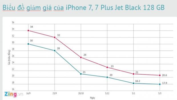 iPhone 7 Jet Black hiện có giá tương đương với các màu khác trong khi bản Plus rẻ hơn hàng trăm nghìn đồng.