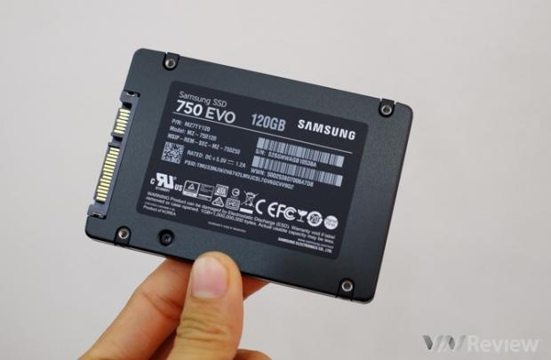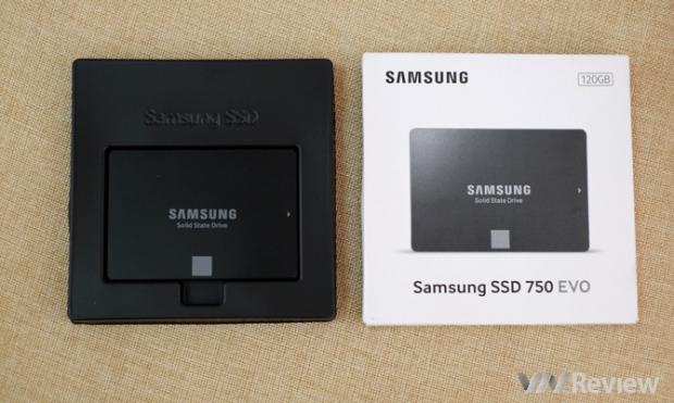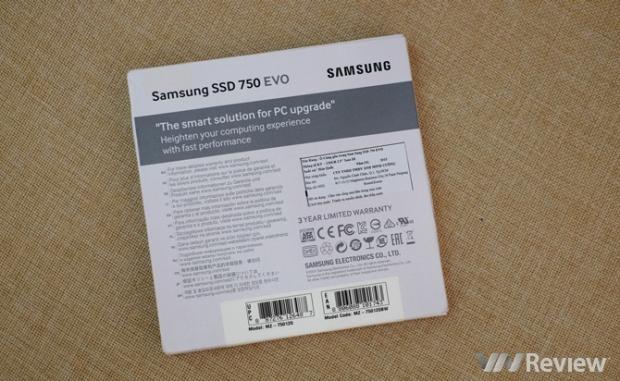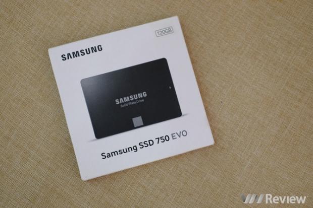 Thiết bị mà VnReview sử dụng trong bài trải nghiệm này là ổ cứng SSD 750 EVO dung lượng 120 GB chính hãng do Samsung phân phối Việt Nam. 750 EVO được định vị ở phân khúc giá rẻ và hiện hàng chính hãng tại Việt Nam có hai phiên bản là 120 GB (giá 1,35 triệu đồng) và 250 GB (2,45 triệu đồng), sản phẩm được bảo hành 3 năm theo phương thức 1 đổi 1.