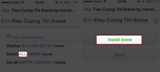 Tại mục Select chọn 'ALL' > Chọn 'Install icons'.