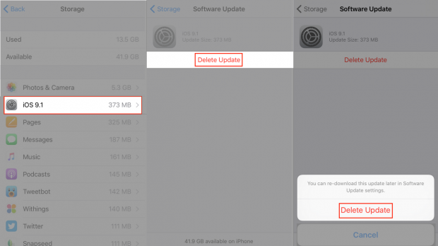 Còn nếu đã lỡ tải về mà chưa cập nhật thì yên tâm hãy truy cập Cài đặt > Cài đặt chung > Dung lượng & Sử dụng iCloud > Quản lý dung lượng. Tại đây bạn sẽ thấy phiên bản cập nhật iOS đã tải về, chọn và xoá bản cập nhật. Sau đó thực hiện như cách trên.