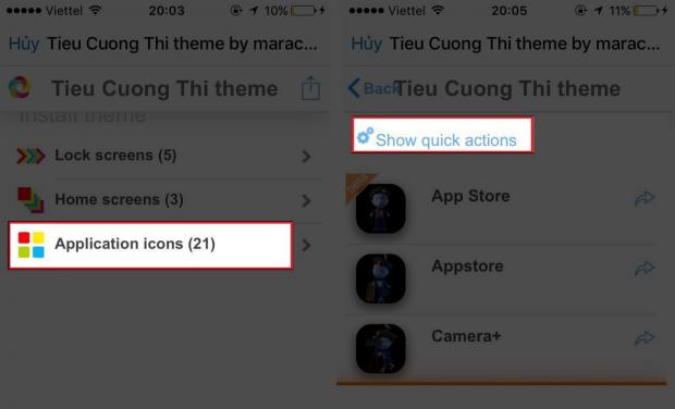 Chỉ việc mở trình duyệt Safari lên, sau đó tuỷ cập vào trang Download Skin. Sau đó chọn một giao diện mà bạn yêu thích > Chọn vào 'Application icons' > Chọn vào dòng 'Show quick actions'.