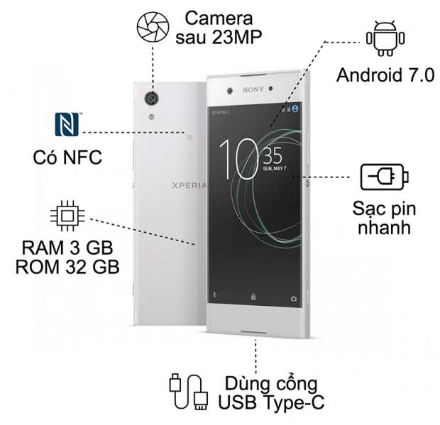 Camera cũng là điểm nâng cấp mạnh trên XA1 khi độ phân giải camera sau được nâng lên thành 23 MP. Dung lượng RAM cũng được nâng lên thành 3 GB, ROM 32 GB. XA1 được Sony chuyển sang dùng cổng kết nối USB Type-C và chạy phiên bản Android mới nhất 7.0.