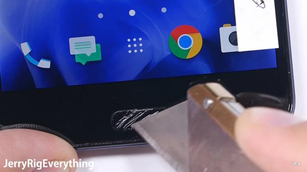 Theo JerryRigEveryThing, phần cảm biến vân tay của HTC U Ultra được phủ lên một lớp nhựa. Điều này dẫn đến việc chi tiết này của máy rất dễ xước. Chịu chung cảnh ngộ với cảm biến vân tay phải kể đến phân khung viền của máy, khung viền camera và phần kính bảo vệ đèn flash LED.