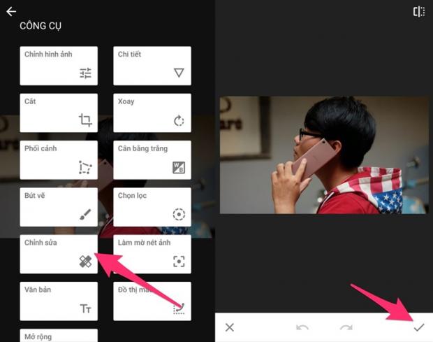 Tiếp theo, loạt tính năng hiện ra, các bạn đừng bấm lung tung, hãy 'chạm đúng chỗ ngứa' vào công cụ Chỉnh sửa.