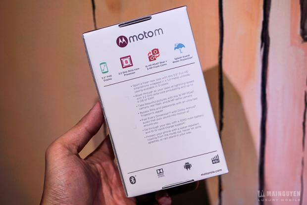 Moto M được trang bị bộ vi xử lý MediaTek Helio P15 - bản nâng cấp về cả hiệu năng và tiết kiệm năng lượng so với Helio P10, kèm RAM 4GB, ROM 32GB (mở rộng bằng microSD), camera trước sau lần lượt 8MP/16MP, pin 3.050mAh, cổng sạc Type-C, cài sẵn hệ điều hành Android 6.0.1. Lenovo cho biết Moto M có khả năng chống trầy xước và nước ở mức độ nhẹ nhờ phủ nano P2i.