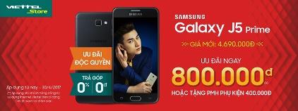 Chưa dừng lại ở đó, mua hàng tại Viettel Store, khách hàng đăng ký gói internet Viettel trên di động sẽ nhận được ưu đãi độc quyền: Ưu đãi ngay 800.000 đồng cho Samsung Galaxy J5 Prime và 500.000 đồng cho Samsung Galaxy J2 Prime. Theo đó, chỉ với 2.190.000 đồng bạn đã có thể sở hữu ngay sản phẩm Galaxy J2 Prime và với 3.890.000 đồng cho sản phẩm Galaxy J5 Prime.