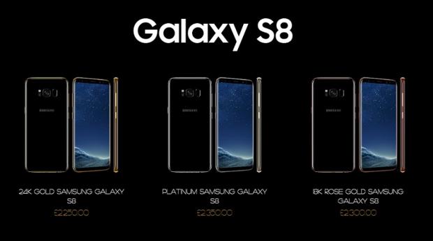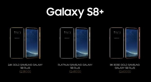 Ngoài bộ khung được mạ vàng 24K, vàng hồng 18K hoặc bạch kim thì thiết kế lẫn cấu hình của những phiên bản này cũng không có gì thay đổi với RAM 4 GB, bộ nhớ trong 64 GB, màn hình 5.8 inch cho Galaxy S8 và 6.2 inch cho S8 Plus, camera trước sau 8 MP/12 MP.