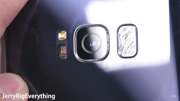 Khi thử nghiệm với những vật nhọn thông thường, cảm biến vân tay và khung viền camera là 2 chi tiết duy nhất của Galaxy S8 bị xước ở phần mặt sau, tuy nhiên sau khi bị xước thì máy vẫn nhận vân tay một cách rất bình thường. Năm nay, cụm đèn flash LED và cảm biến đo nhịp tim của Galaxy S8 đã được đưa thẳng xuống phần mặt kính khiến cho chi tiết này không dễ bị xước như những người tiền nhiệm của mình nữa.